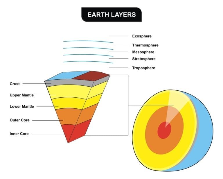The outer core is a molten layer that extends from 2,900 kilometers to 5,150 kilometers. The movement of molten iron and nickel in the outer core generates Earth’s magnetic field through the dynamo effect. This magnetic field is crucial for protecting the planet from harmful solar radiation and cosmic particles. The outer core is composed primarily of iron and nickel, with trace amounts of lighter elements like sulfur, oxygen, and silicon. These lighter elements lower the melting point of the iron-nickel alloy, allowing it to remain molten despite the high pressures.