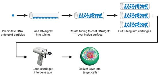 These are methods used to introduce DNA into cells. Gene guns shoot DNA-coated particles into cells, while electroporation uses electric pulses to create temporary pores in cell membranes, allowing DNA to enter.