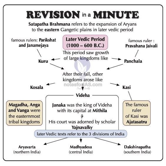 The Later Vedic period (c. 1000–600 BCE) represents a transformative era in ancient Indian history, marked by significant shifts in geography, socio-political structures, economy, religion, and philosophy. This period, succeeding the Early Vedic period (1500–1000 BCE) laid the groundwork for the evolution of classical Indian civilization. A thorough understanding of this phase is essential for UPSC aspirants, as it bridges the gap between the nomadic Vedic culture and the rise of urbanized Mahajanapadas. The period is illuminated by a rich corpus of texts, including the Sama Veda, Yajur Veda, Atharva Veda, Brahmanas, Aranyakas, and the seminal Upanishads, collectively reflecting the dynamic changes of the time.